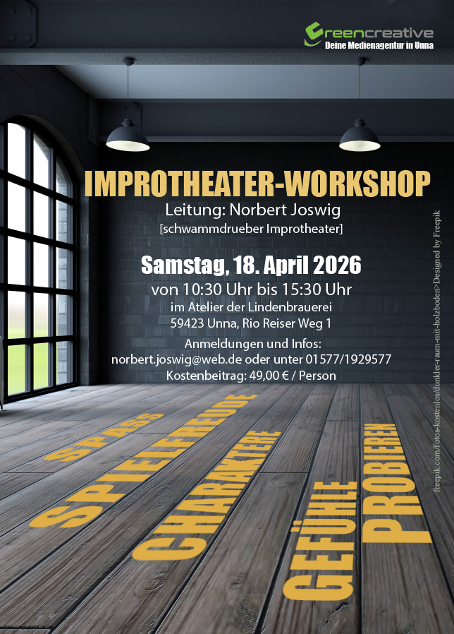 Im Atelier der Lindenbrauerei in Unna finden ein bis zweimal im Jahr Improtheater-Workshops unter der Leitung von Norbert Joswig (Schwammdrueber Improtheater) statt. Die Workshops richten sich an alle, die Spaß daran haben, sich spielerisch mit dem Thema Improvisation auf der Bühne zu befassen. Anfänger sind dabei ebenso willkommen wie SpielerInnen, die schon erste Erfahrungen auf der Bühne gesammelt haben.